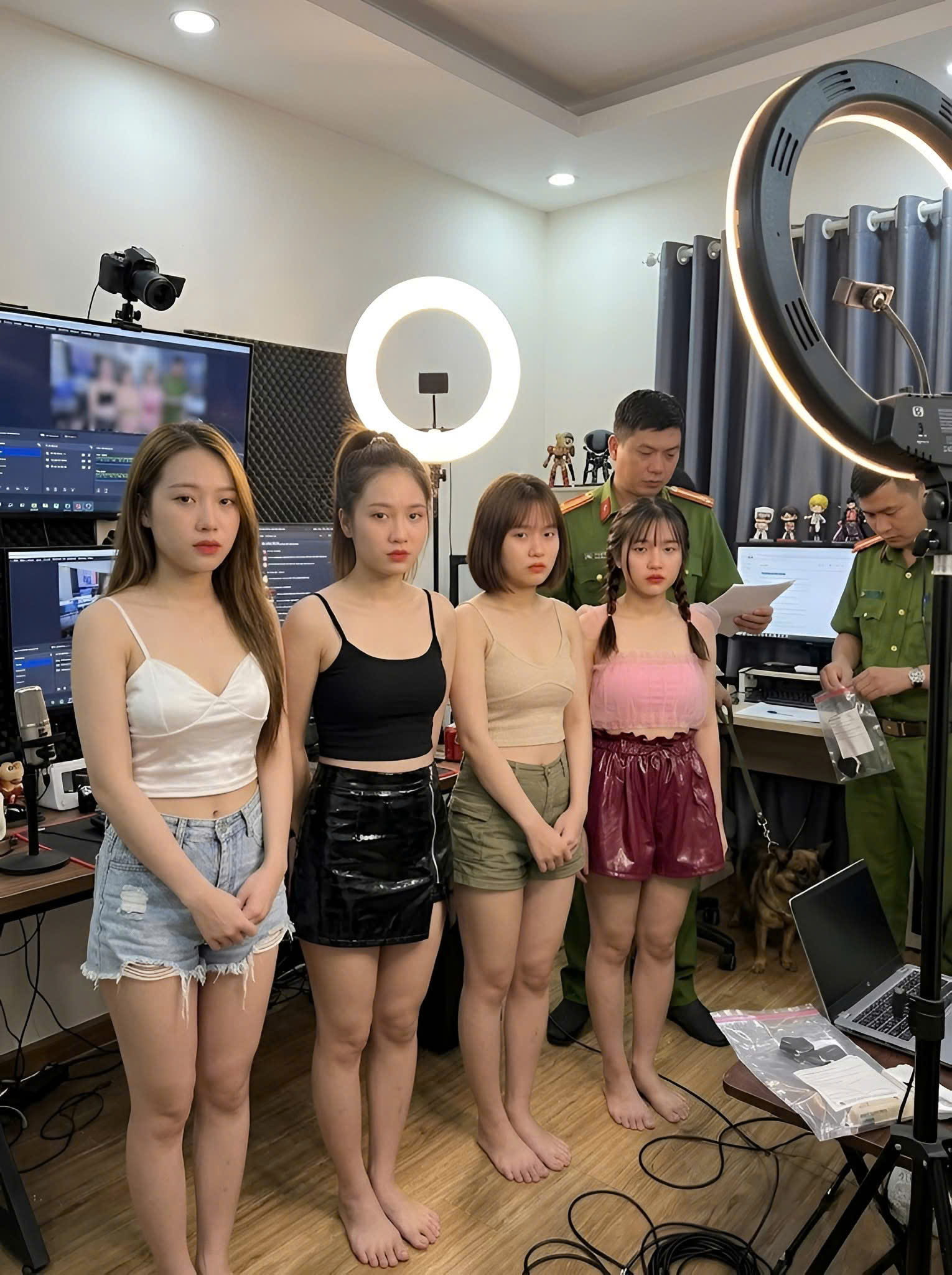 Tổ công tác Công an Cao Bằng đã tiến hành xác minh, triệu tập các đối tượng liên quan, đồng thời kiểm tra nơi ở tại phường Đức Xuân, tỉnh Thái Nguyên, phát hiện một số đối tượng đang có mặt tại đây cùng một số tang vật có liên quan như điện thoại, máy tính, thiết bị chiếu sáng, giá đỡ và các dụng cụ phục vụ livestream.