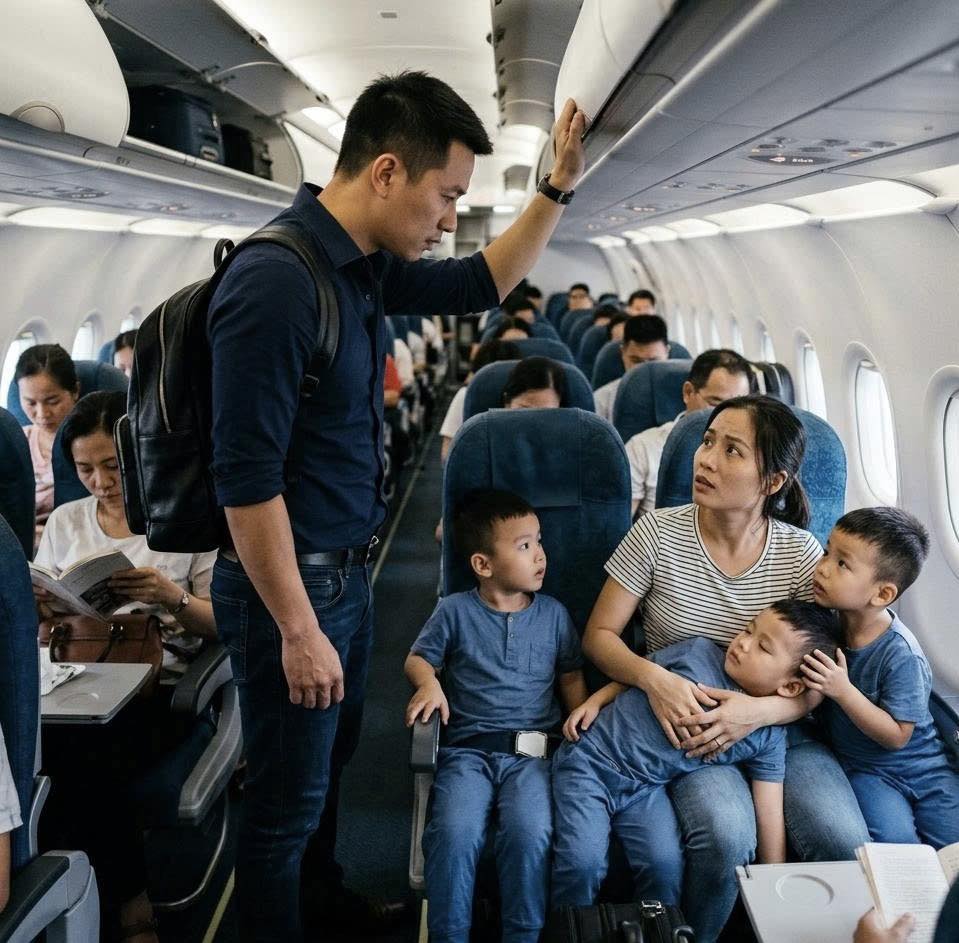 Lâm Khánh lạnh lùng nhìn về phía Mai, giọng nói trầm thấp nhưng đầy uy quyền: “Tôi muốn nói chuyện riêng với vị hành khách nữ đang ngồi ở hàng ghế phía trước, cùng với ba đứa trẻ. Ngay lập tức.”